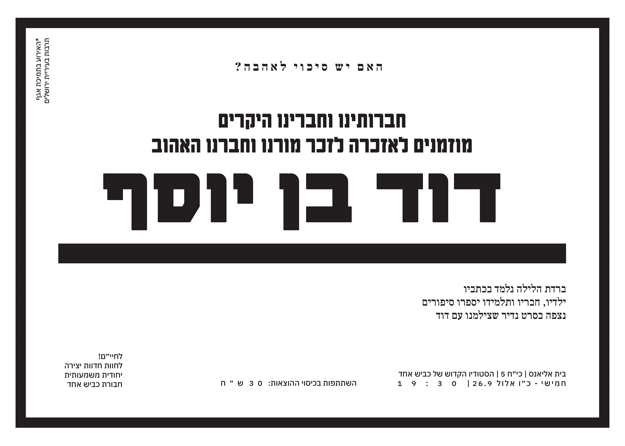 חמישי כ״ו אלול 26.9 בשעה 19:30