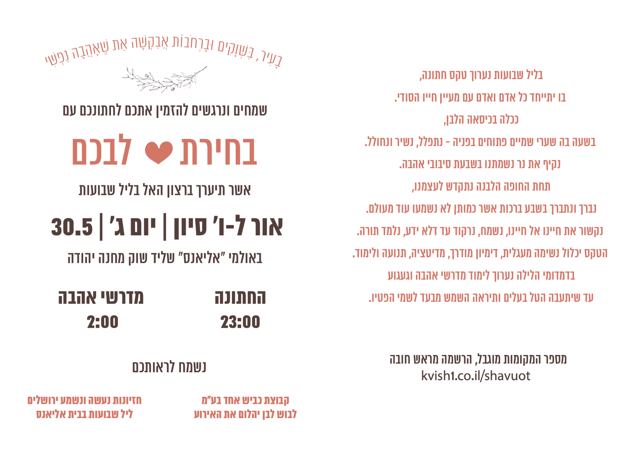 שמחים ונרגשים להזמין אתכם לחתונכם עם בחירת לבכם