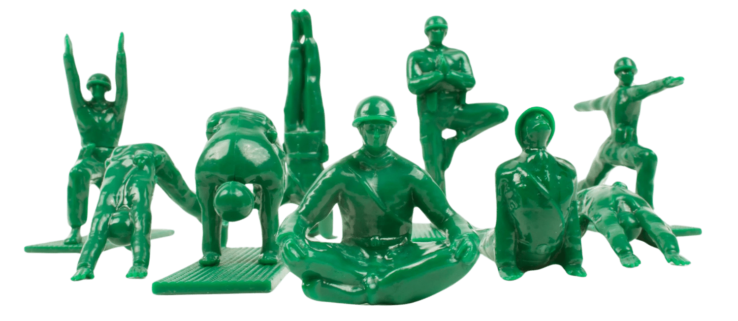 הסט המקורי של חיילי היוגה! עמידת ראש, תנוחת מדיטציה, תנוחת הקוברה, לוחם אחד, לוחם שני, תנוחת הילד, תנוחת העץ, תנוחת העורב וכלב מביט מטה.